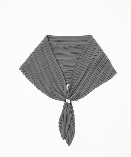 ーーー清涼感のある素材をを使用したプリーツスカーフが登場。ーーー□メタルのリング留め具で調節可能。□首周りはもちろん70×70で大判にしているのでBAGや腰回りのアクセントにも。