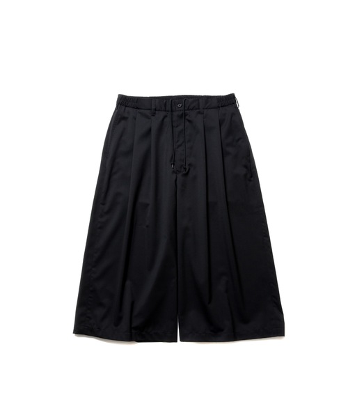 CORDURA®ナイロンとウールの混紡糸(combat wool™)で織りあげられた程よい軽さのツイル生地を使用。 ウールの上質感を持ちながら耐久性に優れる。ドローストリングのバックゴムイージー仕様。前開き有り。 2タックの8分丈ワイドシルエット。