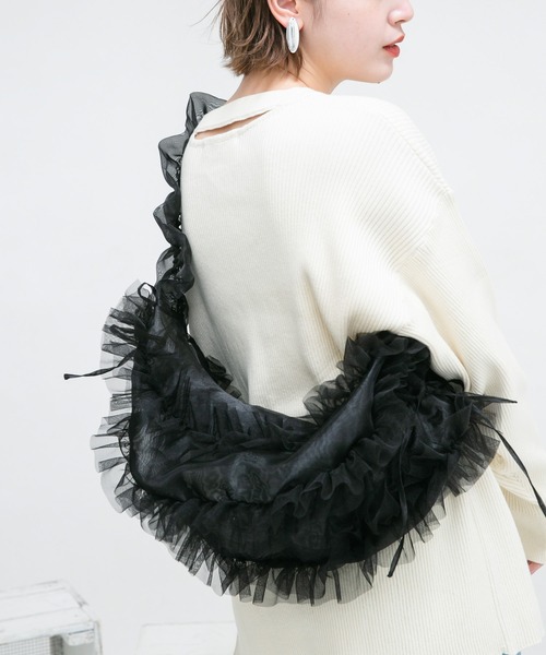 【鮮度の高いスタイリングが叶うチュールBAG】 シンプルな丸みのあるBAGの上からチュール×オーガンジーを重ねることでレディーなムードを高めました。手持ちのみならず斜め掛けしても可愛く、持つだけでトレンド感のあるスタイルが決まります。合わせやすいGRAY&BLACK、柔らかな雰囲気が魅力的なIVORYの3色展開です。 【2024 Spring/Summer】【24SS】 ※詰め込みすぎや重いものを入れて使用すると破損の原因となります。引っ掛かりにはご注意ください。 総重量 : 約50g ※商品画像は、光の当たり具合やパソコンなどの閲覧環境により、実際の色味と異なって見える場合がございます。予めご了承ください。 ※商品の色味の目安は、商品単体の画像をご参照ください。 ▼お気に入り登録のおすすめ▼ お気に入り登録商品は、マイページにて現在の価格情報や在庫状況の確認が可能です。 お買い物リストの管理に是非ご利用下さい。