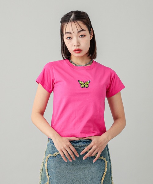 《お気に入り登録》のオススメ! ▼商品のお気に入り登録 再入荷通知や、残り1点の通知、セールなどの通知も受け取ることができます。 ▼ブランドのお気に入り登録 新商品や再入荷など、ショップのおすすめトピックスなどお得な情報をいち早く受け取ることができます。 ストリートスタイルの新定番! コーディネートに映えるコンパクトな半袖Tシャツ 今季もトレンドのちびT。 定番のバタフライモチーフを刺繍したデザイン。 コンパクトなサイズ感で、旬なストリートスタイルを演出します。 シンプルでありながら、Y2Kの雰囲気を楽しめる主役級トップスです。 ■ポイント ・コンパクトなシルエット ・スタイルに映える刺繍デザイン ■コーディネート コンパクトなTシャツは、デニムと合わせたストリートスタイルがおすすめ。 ダメージデニムやボリューム感のあるボトムスと合わせるとバランスがよく、スタイルアップが叶います。 ・透け感:あり ・伸縮性:あり ・生地の厚さ:普通 ・裏地:なし ・シルエット:タイト ※ホワイトで計測しています。 【X-girl(エックスガール)】 ●取り扱い注意事項 ・素材の特性上、他の衣類との摩擦や汗・雨に濡れた場合、色にじみ・移染の恐れが有ります。濡れた場合は素早く拭き取り乾かして下さい。着用時は同系色のものをご着用下さい。 ・アテンションタグ・洗濯表示を必ずご確認の上、ご使用下さい。 ※画像の商品は光の照射や角度により、実物と色味が異なる場合がございます。 また表示のサイズ感と実物は若干異なる場合もございますので、予めご了承ください。 ※画像の商品はサンプルとなります。実際の商品と色味、仕様、加工、サイズ、素材等が若干異なる場合がございます。 ※生産の過程で、素材やサイズなどに若干の変更が出る可能性があります。 ※予約商品など一部商品につきましては、生産の都合上、お届け時期が前後する場合がございます。