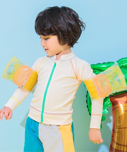 透明感とキラキラのラメが可愛いアームフロート。 サイズ W15×H17.5cm 対象年齢1,5歳以上 定員:1名 安全耐久换查実施済 材質検査実施済 【使用上の注意】 ●本品は、救命負用に作られたものではありません。背の立つところでご使用ください。 ●子どもの一人遊びは危険です。 必ず保護者のもとで遊ばせてください。 ●風の強い時は、使用しないでください。 風や波に流されやすく危険です。 ●ラメが空気栓からでることがございます。 対象年齢未満のお子様には絶対に与えないでください。 ●空気を入れる際には誤飲の恐れがあるため、空気入れを使用してください。 ●本品が体より抜け落ちる可能性がありますのでフロートベスト等との併用をおすすめします。 1.空気の入れ過ぎは破損の原因になります。 外周部にシワが少し残るくらいが適量です。 2.炎天下に置くと、本体が柔らかくなる場合がありますが、空気の追加注入はひかえるか、少量にしてください。 3.空気は、栓と弁の二重構造になっていますが、弁は空気の急激なもれを防ぐ補助弁で、空気を完全に止めるものではありません。必ず栓をしっかり差し込んでご使用ください。 4.空気注入後は、栓をしっかりと差し込み、更に本体内部に強く押し込んでご使用ください。 栓がきつい時は少しぬらして差し込んでください。 (禁止事項) (1)岩角やくい、砂利、貝殻、ガラス片、金属片、木片などとがったものとの接触 (2)タバコや火気に近づけること。 (3)高圧ポンプなどの使用 ※生産過程で色やラメがパッケージ写真とは多少異なる場合がございます。予めご了承ください。 ※画像の商品はサンプルです。 実際の商品と仕様、加工、サイズが若干異なる場合がございます。