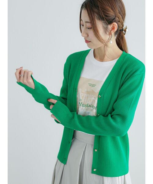 シャープなVネックですっきりと仕上げたカーディガン。どんなアイテムともバランスよくスタイリング出来るシンプルなデザイン。スクエアフォルムのメタルボタンも上品なアクセントをプラスしてくれます。普段使いはもちろん、オフィスコーデなどオンオフ問わずに活躍してくれるアイテムです。※商品画像は、撮影環境やお客様のご利用のPC・スマートフォンのモニター環境などにより実物と色味に差異がある場合がございます。
