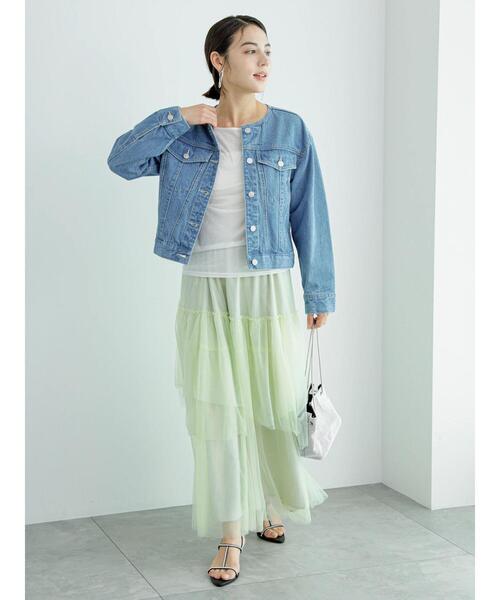 アシンメトリーに重ねたチュールが華やかさを演出するティアードスカート。異素材の組み合わせがスタイリングに個性をプラス。ウエスト部分は総ゴム仕様になっており、安心感のある穿き心地なのも嬉しいです。Tシャツやスニーカーを合わせたカジュアルな着こなしなど、様々な着こなしも楽しめるアイテム。【その他採寸】F ウエスト:[ゴム仕様]60cm