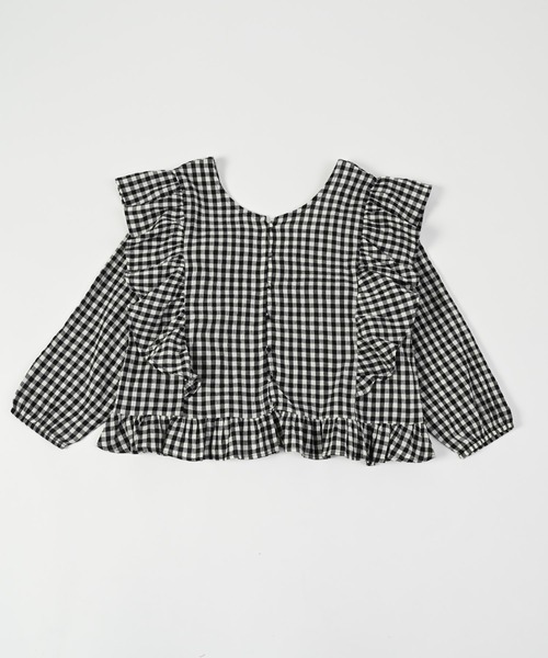 【A BOND】1枚で存在感のあるチェックブラウス♪ふんわり存在感のあるラッフルが華やかさを演出してくれます。通気性のよい薄手のコットン100%の生地感。裾もギャザーたっぷりのふんわりシルエットがガーリーさアップ♪前後どちらでも着られる2way仕様なので、スタイリングに合わせて変えられます。トレンドのクロップド丈もポイント。1枚でコーデが仕上がりますが、前開きでサラッと羽織りとしても◎デニムパンツとのカジュアルコーデもとってもオススメ!1枚あると、いろんなコーデができる万能アイテムです♪■親子でリンクコーデもオススメです!大人サイズ:0030541008■モデル着用アイテム・デニムミリタリータックパンツ:0000141013