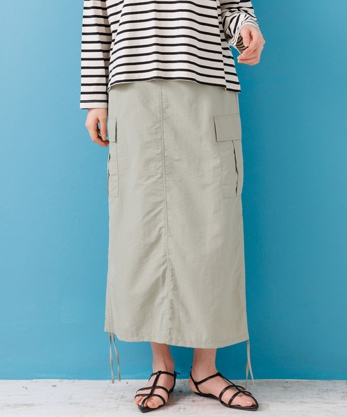 ★サイドドロストカーゴスカート★ ★素材★ 布地の表面を特殊な加工でワッシャー仕立てしたカーゴ ロングスカートです☆ヴィンテージライクな素材感が雰 囲気を作る汚れや雨に強いナイロン素材です! ★Detail★ <2WAYロングスカート> サイドに付いた紐を裾に向けて引っ張り結べばサイドが シャーリング仕様になる2WAYスカートです☆コーデ に合わせて変化を付けられるカーゴタイプのスカートで す♪ <カーゴポケット> 大きめのカーゴポケットがサイドに2つ付いたロングス カートです!収納はもちろんシルエットを隠してくれる トレンドのディテールです◎ ★ポイント★ サイドを絞るとシャーリングになるナイロン素材のカー ゴスカートが登場です☆ワッシャー加工が高級感を演出 するトレンドボトムです♪ 透け感:なし 伸縮性:なし 裏地:あり ※モニター・環境等により実際の商品と多少色味が異な って表示される場合がございます。予めご了承ください ますようお願い致します。