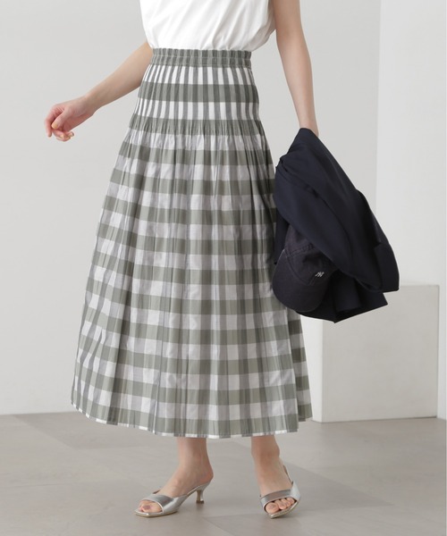 ウエストまわりに細かいプリーツを入れたデザイン性のあるスカートは、裾に向かってプリーツを緩めるなど、全体にプリーツ加工で強弱をつけた1枚。腰まわりはすっきりと、裾まわりはひかえめに広がるシルエットです。春夏スタイルのアクセントに効いた、大人な配色チェック柄も目を引く仕上がりに。Tシャツ×ジャケット、キャミソールやタンクトップ×透け感のあるカーディガンを合わせるなど、大人の休日コーデにおすすめです。**********************透け感:ややあり裏地:あり伸縮性:なし光沢感:なし生地の厚さ:普通**********************●取り扱いについては、商品についている品質表示でご確認ください。●撮影はサンプル商品で行っている為、仕様とサイズが異なる場合がございます。●スタジオ及び屋外で撮影した着用画像は、光の当たり具合やご覧のモニターによって色味が違って見える場合があります。予めご了承ください。●生産時期により色・素材・サイズ感など多少異なる場合がございます。予めご了承ください。≪お買い物をよりお楽しみいただくために≫・「商品のお気に入り登録」再入荷通知や、ラストの通知、セール通知も受け取ることができます。・「ブランドのお気に入り登録」新商品や再入荷など、お得な情報を受け取ることができます。