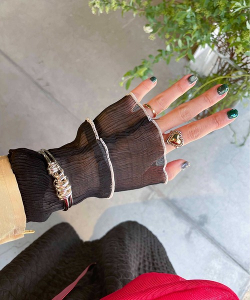 ■POINTシーズンライクなシアー素材で仕立てたアームカバー。 配色のメローデザインを取り入れたトレンド感のあるディテールがポイント。 縦方向にシボを出した楊柳生地はシワになりにくい上、さらりと柔らかく、肌離れのよいドライタッチな素材感で、これからの季節にぴったり。 トップスの袖からチラッと覗かせたり、半袖やノースリーブと合わせてスタイリングのアクセントに取り入れてみて。 ■COLOR IVORY/BLUE/BLACK ※画像の商品は光の照射や角度により、実物と色味が異なる場合がございます。また表示のサイズ感と実物は若干異なる場合もございますので、予めご了承ください。 ※お取り扱いの際は、商品についている品質表示とアテンションタグを必ずご確認下さい。 <<CONTROL FREAK/コントロールフリーク>> CASUAL , DAILY & TREND ベーシックも、トレンドもどちらも自分らしく取り入れられる カジュアルスタイルが好きな全ての方に向けて 心地よく、デイリーに使えるアイテムを提案します。 <<お知らせ>> ◆商品のお気に入り登録◆ お気に入りアイテムの値下げ・再入荷・在庫1点などの通知を受け取ることができます。 ◆ブランドのお気に入り登録 ◆ 新商品や再入荷、セール、クーポン配布などお得な情報を受け取ることができます。