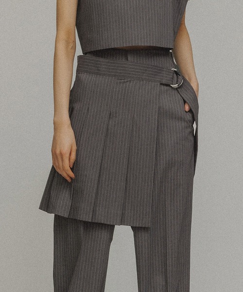 【ムウトアール】ピンストライププリーツラップベルト ミニ丈のプリーツスカートで、ウエストサイズはベルトで調整可能。同素材のスラックスと合わせての着用はもちろん、デニムやジャージとのレイヤードもおすすめです。 中のボトムスのポケットに手が入るように脇にはスリットを入れています。 一枚持っておくとコーディネートの幅が広がるアイテムです。 ---------------------------------- 裏地:なし 透け感:なし 伸縮性:なし 光沢感:なし 生地感・厚さ:中肉 ポケット:なし ケア方法:手洗い可、石油系溶剤によるドライクリーニング、ウェットクリーニング ---------------------------------- ※モデル着用の画像は、光の当たり具合で色味が若干異なって見える場合がございます。 商品の色味は、アイテム画像をご参照ください。 ※画像の商品はサンプルです。 実際の商品と仕様、加工、サイズが若干異なる場合がございます。 M/MUU/MUU TO-R/MTOR/mtor/ムウ/ムウトアール/ムー