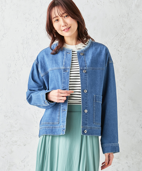 《カジュアルに羽織れて普段使いに活躍》 程よくゆったりとしたシルエットでトレンド感を出したデニムジャケット。 衿もとは裁ち切りで仕上げることで、ひと味違った印象を添えています。 長すぎず短すぎず、さまざまなボトムスと合わせやすい丈感です。 【デザインポイント】 ・襟元のフリンジと大きなポケットがポイントのGジャンです。 ・スカートなどの甘めアイテムと合わせるとブランドらしいコーデに仕上がります。 ----------------------------- 透け感:なし 伸縮性:あり 裏地:なし 光沢:なし ポケット:あり ----------------------------- 【スタイリング】 ・オンオフ問わず着用していただけます。 ・デニムパンツにカットソーを合わせたカジュアルなコーデに羽織ることで、アウトドアなシーンでのコーデが完成します。 ・パーカーやスウェットを着用した休日のコーデいも合わせていただけます。 ・スカートと合わせて、フェミニンさをプラスしたコーディネートがおすすめです ・どんなコーデにも馴染むため、ちょっとしたお出かけのアウターにおすすめです。 ・デイリーに着用していただけます。 【カラーバリエーション】 ・ネイビー(紺)...春アウターのカジュアル代表であるネイビーのデニムジャケットはパンツともスカートとも合わせやすく、1枚は持っていたいおしゃれアイテムです ・ブルー(青)...ブルーのデニムジャケットは春の淡いカラーや花柄アイテムとも合わせやすいです 【サイズバリエーション】 ・9号(Mサイズ相当) ・11号(Lサイズ相当) ・13号(LLサイズ相当) モデルは9号を着用しています。 【ブランド紹介】 French Casualーフェミニンに生きる女性のためのリアルクローズがPetit Honfleur。 カジュアルをベースに、ほどよくトレンドを落とし込んだアイテムは大人可愛く、“映え”間違いなし! 着こなしやコーディネートで旬のスタイリングを提案します。 【お買い物をお得にもっと楽しんで頂くために】 ▼商品のお気に入り登録▼ 完売カラーの再入荷通知や、ラスト1点の通知、プライスダウンしたセール通知も受け取ることができます。 ▼ブランドのお気に入り登録▼ 新作や再入荷等、いち早くブランドのお得な情報を受け取ることができます!