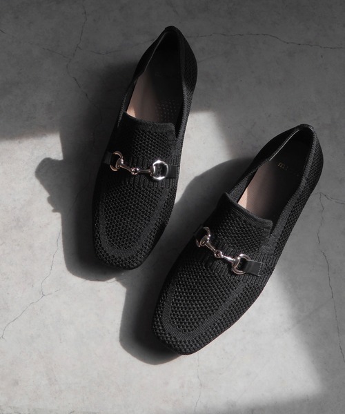 [ SS2024 / minia ] オールニット素材のビットローファー 素足履きでシーズンムードアップ ローファーのきちんと感はそのままに、 ニット素材でちょっぴりカジュアルダウンした 素材遊びが可愛い大人のシューズ。 柔らかく足当たりの良いニット素材は ハリがあり季節を問わず使えます。 アッパー全体に粗メッシュのニット素材を採用。 サイドは裏をあてずにやや透け感を残し 甲部分は裏をあて透けない仕様にしました。 カジュアルな素材だけど、 ローファーのきちんと感を演出するための こだわりの仕様なんです。 きれいめスタイルやセットアップなど オフィスカジュアルの毎日使いにぴったり。 もちろんデニム合わせもGOOD。 素足履きも靴下合わせも両方楽しめるから お気に入りの1足になるはず。おすすめです。 ----------------- < カラー > ・ブラック ・アイボリー ・モカ ----------------- < スペック(Mサイズ) > ●ヒール高さ…約2.2cm ●片足重量…約210g ●中敷下全体に低反発スポンジを採用。 ----------------- < サイズ目安 > ●Sサイズ…22.5cm程度 ●Mサイズ…23.5cm程度 ●Lサイズ…24.5cm程度 ●LLサイズ…25.0cm程度 ----------------- < サイズ感 > 小さい □□■□□ 大きい < 足幅 > 狭い □□■■□ 広い < やわらかさ > 柔らかい □□■□□ 硬い ----------------- < スタッフ試着 > ●Mサイズ / 素足・普通靴下 【23.0cm 普通足 普段Mサイズ】 足長が大きく人差し指1本入るくらいです。 中敷やつま先クッションで調整するとちょうど良さそう。 【23.5cm 幅広甲高 普段MかLサイズ】 足長/幅/甲とも問題なしでした。 いつものサイズ選びで良さそうです。 < おすすめのサイズ選び > ●幅狭も普通足も幅広甲高もいつものサイズを選びました。 ----------------- ●材質…合成繊維/合成底 ●原産国…中国 ----------------- minia/ミニア いつものコーデにプラスするだけでトレンド感がUPするようなアイテムを提案。結婚式やパーティ・二次会などオケージョンシーンや通勤・オフィスカジュアルでも使えるシンプル上品なアイテムから、普段のおでかけ・通学でデイリーに使えるカジュアルな定番アイテムまで幅広くラインナップ。 靴・バッグをはじめ、イヤリング・ピアス・ネックレス・ヘアゴムなどのアクセサリー/ヘアアクセサリーなど、韓国ファッションで人気のアクセ・雑貨も取り扱っています。プレゼント/贈り物/お返しにもぴったり。 試しやすいプチプライス~素材や機能性にこだわったアイテムもご用意。また、靴箱に再生紙を使用するなど環境に配慮したサステナブルなものづくりに取り組んでいます。姉妹ブランドに『alala』『Una gardenia』『Hercheek』。 ※お使いのモニターや閲覧環境により、実際の色味と違って見える場合がございます。 ※生産時期により僅少なサイズ感のブレ・色ブレが生じる場合がございます。生産工程上やむを得ないことであり不良ではございません。予めご了承くださいませ。 ※素材の特性上、色移行が生じる場合がございます。特に汗や雨で濡れた場合、淡い色の靴下・ストッキングや小物・衣類などへの色移行に十分ご注意ください。 ※水に濡れた場合はすぐに乾拭きして風通しの良い場所で日陰干してください。市販のクリーナー・洗剤をご使用の場合は取り扱いにご注意ください。