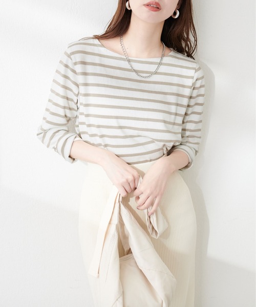 【2024SS natural couture】 リバイバル!大人気ボーダーT! ■Design 細いストライプが大人っぽく上品な空気感を演出してくれるから コーデにこなれたニュアンスをプラスしてくれること間違いなし。 フェミニンな雰囲気にと着回し力抜群なのでデイリーユースにぴったりの大人のカットソー。 色違いで揃えても使いやすいので、毎日の定番にしたいマストアイテムです。 ■Styling 着用シーズンも長く、幅広い年代のお客様におすすめです。 ジャンパースカートやサロペットなどに合わせても、もちろん1枚でも着られる、絶対安定の一品。 ■Fabric コットン100%使用しているので、さらっとした素材で着心地の良さは抜群◎ =================== お手入れ方法:マシンウォッシャブル 透け感:なし 裏地:なし 伸縮性:少しあり 光沢感:なし 生地感 :肌触りの良い生地感 =================== 【お気に入り登録でお得な情報がいっぱい】 ・「商品のお気に入り登録」で再入荷通知や、ラスト1点の通知、セール通知をいち早く受け取ることができます。 ・「ブランドのお気に入り登録」で新商品や再入荷など、お得な情報を受け取ることができます! ※店舗の入荷時期は商品によって異なります。 店頭の在庫状況につきましては各店舗にてお問い合わせください。 ※撮影時の光の関係で、画面上の画像と実際のお色とでは若干の色差が生じる可能性がございます。 また、ご覧いただいているモニター画面や、お使いのブラウザによっても、お色の違いがございますことをあらかじめご了承くださいませ。