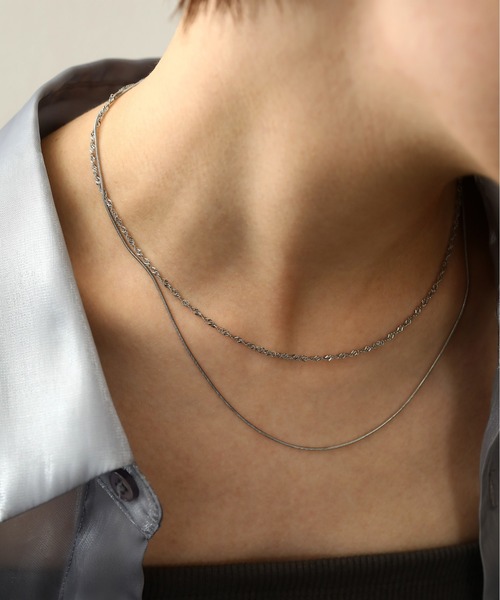 サージカルステンレスを使用した 金属アレルギー対応のアクセサリー -ORLEAN アクセサリーの特徴 ・金属アレルギー対応 ・変色しない為お風呂、温泉、プール、海でもつけっぱなし◎ ・長く愛用できる硬くて丈夫な素材 ・医療用器具にも使用されているサージカルステンレス素材を使用 ◆ item ◆ ・華奢ながらも程よい存在感でコーデを垢抜けさせてくれるチェーンネックレス ・2種類の異なるチェーンを使い、レイヤード風のスタイリングに ・エアリーな着け心地とシンプルなデザインでつけっぱなしアクセとしてもおすすめ -detail カラー:シルバー/ゴールド 長さ:41~46cm 長さ調節:可 【サージカルステンレス】 サージカルステンレスとは、医療用のメスなどに使われている合金素材です。 金属アレルギーが起こりにくく、お肌の繊細な方に寄り添った素材となっております。 空気や汗に触れても錆びにくく、熱や腐食にも強い上、傷もつきにくいという耐久性の高さが特徴。 水に強いので着用したままプールや海、お風呂に入っても安心。 素材自体が軽量なので長時間付けていても負担になりにくいというメリットもあります。 ※アレルギーの原因はさまざまです。 サージカルステンレスはアレルギーが起きにくい素材ではありますが、すべての方にアレルギーが起きないことをお約束するものでありません。 予めご了承くださいませ。 ◆ ORLEAN ◆ 金属アレルギーでも「好き」に素直でいたい。をコンセプトにサージカルステンレスにこだわったアクセサリーブランドです。