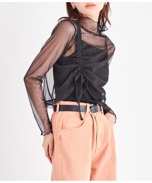 トレンドのシアー素材にキラキラと輝くラメをプラスした華やかなトップス。●ベストやカーディガン、ワンピースなど、様々なアイテムのインナーとして合わせるだけでぐっと雰囲気のある着こなしに。●首元や袖口からちらりと覗かせるだけでトレンド感をプラスできます。●ストレッチ性があり、裾のシャーリングデザインがアクセントに◎●インナーとしてだけでなく、キャミの上にレイヤードしたスタイルもおススメです。●シアー感のあるチュール素材のため、合わせるアイテムによってロングシーズンお使いいただける、着回し力にも優れたアイテムです。※ストレッチあり※裏地なし※透ける素材になっております。※商品のお取扱いに関しましては、商品に付属のアテンションカード、洗濯ネームをご覧ください。※モデル着用画像は光の当たり具合で色味が違って見える場合がございます。※商品の色味の目安は、色見本画像をご参照ください。【お買いものをお楽しみいただく為に!】▼商品のお気に入り登録完売カラーの再入荷通知や、ラスト1点の通知、セールの通知も受け取ることができます。▼ブランドのお気に入り登録新商品や再入荷など、いち早くブランドのお得な情報を受け取ることができます。