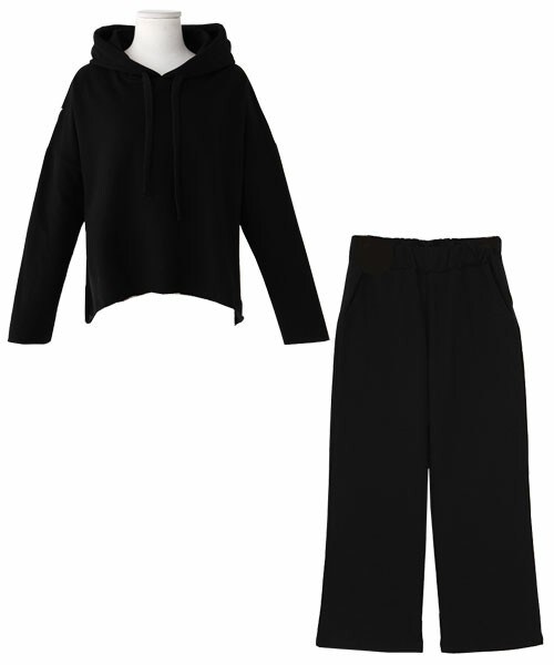 フーディーとクロップドパンツのセットアップです。上下スウェット素材で動きやすく、 ※WEARに記載してある金額と、DHOLIC通販サイトに記載してある金額にシステム都合上誤差がございますが、正しい金額はDHOLIC通販サイトの方です。
