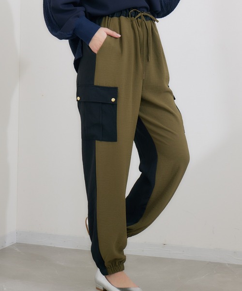 ウエストゴムでラクチンな履き心地のカーゴパンツ[素材]・さらっとした着心地の素材感。暑い時期でも蒸れにくいです。[デザイン]・きれいめ素材のスポーティーなカーゴデザイン。・カーキは前後配色、ブラックはウエストと裾に配色。・ゴールド釦がきれいめな印象をプラスしてくれるので、カジュアルになりすぎないです。・落ち感がありシルエットがスッキリ見えます。[スタイリング]・シンプルなニットやカーディガンに、大ぶりのアクセサリーをスタイリングすれば大人の余裕を感じさせるきれいめカジュアルルックが完成します。・シャツやフェミニンなブラウスとのMIXコーデもおすすめです。【お買い物をよりお楽しみいただくために】・商品のお気に入り登録をおすすめします!♡マーククリックで登録できます。完売カラーの再入荷や、ラスト1点になったときの通知、セールの際に通知などお得な情報を受けることができます。・ブランドのお気に入り登録もご一緒にお願いいたします!新商品や再入荷、などいち早くブランドの最新情報をお届けします。