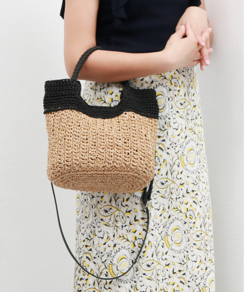カシュカシュ cache cache / 切り替え編みクロッシェ2wayミニトート■デザイン&ポイント柄編みのボディとカラー配色のシンプルなクロッシェバッグ。ペーパーとポリエステル糸を組み合わせ高級感のある仕上がりに。長財布や500mlボトルなどが入るサイズ感でデイリーユースにおすすめです。ショルダーは長さ調節と取り外しができます。■アテンション・天然素材を使用しハンドメイドで生産をしているた為、本体の編み終わり部分に段差やサイズ・かたちに若干の違いが生じます。・摩擦や水濡れ(雨、汗、アルコール消毒液など)により色落ちのしやすい素材を使用しております。淡色のお洋服や中に入れる物への色移りの可能性がございますのでご注意下さい。・素材特有のにおいがする場合がございます。においが気になる場合は一度陰干しをされた上でご使用ください。■ブランドコンセプト-- cache cache / カシュカシュ --カシュカシュとはフランス語で「かくれんぼ」。ガーリッシュとちょっと背伸びをした大人っぽさをミックスしたデイリーカジュアルなファッション小物を展開。カラフルで素朴なハンドクラフトやかわいらしいモチーフ使いで、洋服とのコーディネートに可愛らしさと遊びをプラスするバッグを提案。■商品のお気に入り登録をお願いします【カートに入れる】横のハートマークをクリック再入荷やラスト1点のお知らせ、セール情報などのお知らせを受け取ることができます■下記の品番をお申し付け下さい。品番:01-00-81180