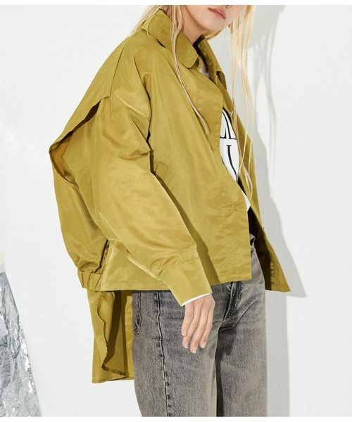 バックシャーリングがアクセントになるシャツジャケット。 ●後ろ姿はレイヤードしているような印象の作りで、ミリタリーテイストと女性らしさの両方を兼ね備えたデザイン◎ ●バックとフロントのギャップがポイントで、前後差を付けた着丈もポイントです。 ●ゆったりした身頃でインナーのサイジングやデザインを気にせず羽織っていただけます。 ●ロゴTやデニムなどカジュアルなアイテムからスカートやヒールを合わせた女性らしいスタイリングまで幅広く合わせやすく、厚すぎない素材感が季節の変わり目に重宝します。 ※ストレッチなし※裏地なし※ポケットあり ※商品のお取扱いに関しましては、商品に付属のアテンションカード、洗濯ネームをご覧ください。 ※モデル着用画像は光の当たり具合で色味が違って見える場合がございます。 ※商品の色味の目安は、色見本画像をご参照ください。 【お買いものをお楽しみいただく為に!】 ▼商品のお気に入り登録 完売カラーの再入荷通知や、ラスト1点の通知、セールの通知も受け取ることができます。 ▼ブランドのお気に入り登録 新商品や再入荷など、いち早くブランドのお得な情報を受け取ることができます。