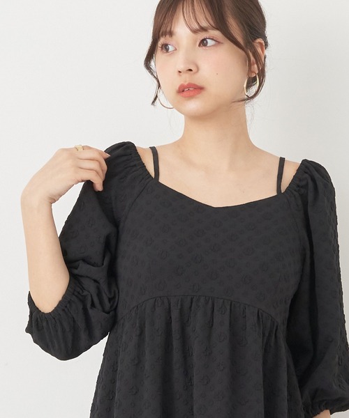 表面感のある生地がさりげない華やかさを演出するワンピース。 肩紐が付いているので、オフショルダーとしてもお使いいただけます。 ギャザーを寄せたふんわりシルエットが女性らしさをプラス◎ ショートブーツと合わせて足元を引き締めたコーディネートがおすすめです。 透け感[無し] 裏地[一部有り] 伸縮性[無し] 光沢感[無し] 生地の厚さ[普通] 付属品[無し] ポケット[無し] ●製品寸法: F:バスト46cm 着丈120cm 袖丈45cm ウエスト[後ゴム仕様]76cm ヒップ114cm 裾幅110cm 備考: