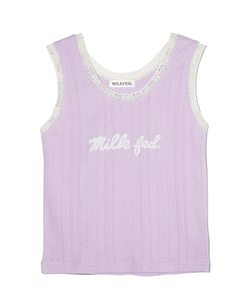 ▼商品のお気に入り登録完売カラーの再入荷通知や、ラスト1点、セールの通知をお知らせします。予約アイテムが販売開始の際も通知を受け取ることができます。▼お気に入りショップに追加新商品や再入荷など、いち早くブランドの情報を受け取ることができます。スタイリングのスパイスになる!レースデザインが今っぽいロゴタンクトップ■優しい雰囲気のレースを使ったタンクトップ■レトロな雰囲気に仕上げる為に胸のプリントは少しかすれたような染み込みプリントにしています■インナーにも大活躍なタンクトップはオールシーズン使用可能■シンプルで使い勝手が良いインナーは何枚持っていても困らないアイテム【スタイリング提案】パーカーやカーディガンを羽織ってちら見せするのがおすすめ!ボトムはミニスカートやタイトなロングスカートを合わせてガーリーに。・透け感:あり・伸縮性:あり・生地の厚さ:普通・裏地:なし・シルエット:タイト※ホワイトで計測しています。【MILKFED.(ミルクフェド)】【取り扱い注意事項】・アテンションタグ・洗濯表示を必ずご確認の上、ご使用下さい。※画像の商品は光の照射や角度により、実物と色味が異なる場合がございます。また表示のサイズ感と実物は若干異なる場合もございますので、予めご了承ください。※商品の色味の目安は、商品単体の画像をご参照ください。※画像の商品はサンプルとなります。実際の商品と色味、仕様、加工、サイズ、素材等が若干異なる場合がございます。※予約商品など一部商品につきましては、生産の都合上、お届け時期が前後する場合がございます。