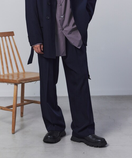 独自のスタイルとセンスで人気を集めるビジュアルスタッフ「あゆた」がディレクションしたカプセルコレクション「K’ Project」のアイテム【素材】マットな質感と重めの素材感で真夏以外の3シーズン対応可能なポリエステルレーヨン素材を使用。【デザイン】ツータックワイドストレートシルエットのスラックス。素材の重さを計算した設計にしているので、太さを確保しながらもきれいなシルエットを感じていだけます。また総丈【ベルト上~裾まで】を長めに設定しているので、ボリュームのあるブーツはもちろんローテクのスニーカーとの相性も◎です。【推奨サイズ】02サイズ(M):165~175cm03サイズ(L):170~180cm※標準体型を基にした目安になります。- BRAND CONCEPT -時代を超えて支持されるトラディショナルなアイテムをベースに、アソビ心とストリートの自由な発想を取り入れ、日本独自のミックススタイルを提案します。【気になる商品はお気に入り登録をおススメ】▼商品のお気に入り登録完売しているカラーの再入荷通知や、ラスト1点、セールの通知をお知らせいたします。▼ブランドのお気に入り登録新商品や再入荷など、いち早くブランドの情報を受け取ることができます。店舗へのお問い合わせ商品番号:170-78610●製品寸法:02(M):W74~90cm H117cm 股下74cm 前股上29cm 渡り幅36cm 裾幅26cm03(L):W78~94cm H121cm 股下76cm 前股上30cm 渡り幅37cm 裾幅27cm備考:
