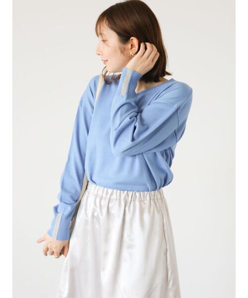 袖のラメラインが上品なアクセントをプラスするニット。 デコルテや顔周りを綺麗にみせてくれるシンプルなVネックデザイン。 目の細やかなニットで品良くスタイリングでき、オンオフ問わずに活躍してくれます。 洗濯機洗いが可能なのでお手入れもしやすいアイテムです ・MACHINE WASHABLE 洗濯機洗いが可能です。 ※商品画像は、撮影環境やお客様のご利用のPC・スマートフォンのモニター環境などにより実物と色味に差異がある場合がございます。