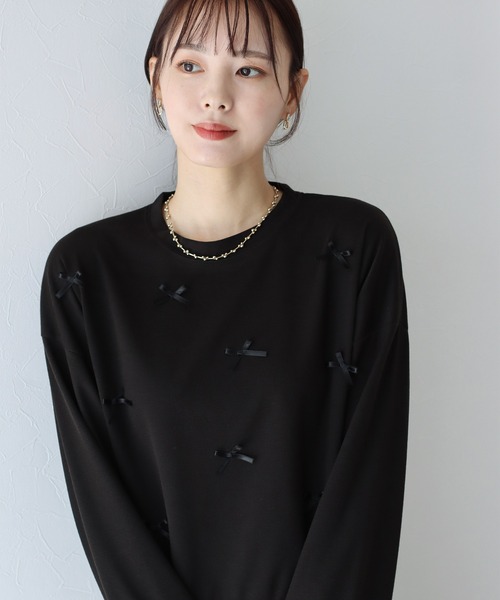 【2024SS】 立体的なリボンをランダムに散りばめたカットソー ◦POINT トレンドのリボンモチーフを付け、シルエットはカジュアルながらもリボンがあることでガーリーな印象に。 ミニリボンをフロント部分に散りばめ、写真映えする華やかなデザインに仕上げました。 ゆるっと肩が落ちたドロップショルダーで抜け感をプラス。 オーバーサイズでゆったりと着用でき、柔らかい生地感で着心地も快適。 着るだけで今っぽく仕上がるトレンド感のあるアイテムです。 ◦STYLING ベーシックなボトムスを合わせるとまとまり感のあるコーディネートになり、 デニムやカーゴパンツ合わせでもカジュアルになりすぎずフェミニンさをプラスしてくれます。 パンツスタイルだけではなくレディな印象のサテンスカートやワンピースと合わせるのも◎ ◦DETAIL ブラックリボン付き ◦FABRIC 柔らかいカットソー素材 [ コーディネート ] ラインストーンハイウエストデニムパンツ 81391766(ZOZO)542416-7400(店舗) シャーリングカーゴスカート 76612477(ZOZO)542324-6302(店舗) [ 商品のお気に入り登録 ] 完売カラーの再入荷通知や、値下げのお知らせ、ラスト1点の通知などが受け取ることができます。 随時再入荷していますので、お気に入り登録して頂くと再入荷情報がGET出来ます。 [ ブランドのお気に入り登録 ] 新商品の発売や再入荷、タイムセールやクーポン発行のお知らせなど BLUEEASTのお得な情報を受け取ることができます。ぜひご登録ください♪ ※撮影環境により、モデル着用画像は実際の商品と色味が異なって見える場合がございます。 また、PCやスマートフォンの環境により画面上と実物では多少色が異なって見える場合がございます。 トルソー画像が実際の商品に一番近いお色となりますのでご確認ください。 ※濃色は色移りする場合がございますのでご注意ください。