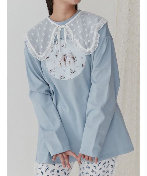 〇Maison terrier × merry jenny 〇 special collaboration ! ■デザイン merry jennyの今期のシーズンテーマ、 U raraをイメージして作成いただいたメレンゲクッキー犬。 真っ赤なさくらんぼでおめかしをして。 お花柄のお皿の上に2匹なかよく並んでいます。 お花柄はmerry jennyのpetit flowerシリーズとお揃いになっています。 刺繍のコラボロゴも添えて。 春先に大活躍なロンTのお作りです。 ■サイズ感 ゆるっとしたオーバーサイズなので、体のシルエットを拾わず、着丈も長めなので腰回りなどのカバーにも〇 ■スタイリング カジュアルなカットパンツ合わせや、敢えてすとんっとしたシルエットのスカートと合わせても〇 【商品情報】 透け感:無し 裏地:無し 伸縮性:有り 光沢感:無し 生地の厚さ:普通 ------- Maison terrier | YOKOO KANA 1996年生まれ 東京都出身 Instagram:@maison_terrier 武蔵野美術大学工芸工業デザイン学科テキスタイル専攻を卒業後、アパレル店、東京・国立の菓子店フードムードでの勤務を経て、独立。大 好きな犬をモチーフにしたお菓子をつくるアトリエMaison terrier(メゾン・テリア)として、 東京近郊でのイベント出店を中心に活動中。 ------- 【商品のお気に入り登録】 ♡をクリック! 完売カラーの再入荷や、ラスト1点の通知、 セールの際の通知も受け取ることができます。 【ブランドのお気に入り登録】 新商品や再入荷など、 merryの情報をいち早くお知らせします! ぜひご登録ください♡ 〉担当者コメント デニムパンツやチュールスカートに・・♡ カジュアルからフェミニンまで幅広く合わせられる おすすめロンTです!
