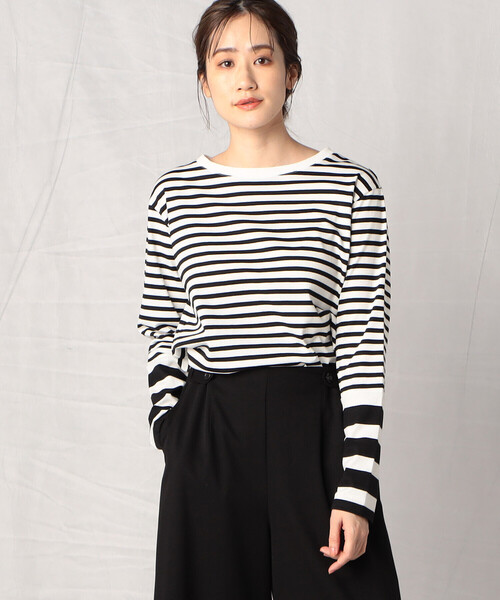 《デザイン》 柄切り替えが新鮮な長袖ボーダーTシャツです。 1980年代、日本のファッションを席捲したフレンチカジュアルブーム。この素材は、当時流行ったものと同じ製法で作っています。袖の部分には、太さの異なるボーダーを使い、現代風に変化を加えています。ボーダーは、柄の中でも汎用性の高いことが魅力です。 《素材》 空気の流れで撚りを加えて作られた空紡糸を使用しています。 糸の外側に強い撚りがかかり、内側は柔らかく、糸に適度な空気を含んでいるので、通常の綿糸よりも、吸水性や速乾性があります。また、糸の太さが不均一で、素朴な味わいがあります。 …………………….…….…….… 透け感:なし 厚さ:ふつう 伸縮性:あり 光沢感:なし 裏地:なし ポケット:なし 洗濯方法: 洗濯機洗い …………………………..…….… #SS新作 #春コーデ #ボーダーT #ロンT #マシンウォッシャブル #ロングシーズン ※画像の商品はサンプルとなりますので実際の商品と仕様、加工、サイズが若干異なる場合がございます。 ※こちらの商品はFIVE FOXes独自の採寸方法となっています。 本サイトのサイズガイドと採寸方法が異なる場合がありますのでご了承ください。