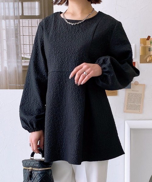 【Be praised】ーーー明日ちょっと褒められる服ーーー大人トレンドを意識したこだわりのアイテムと着こなしでアナタの毎日に輝きを。ただシンプルできれいなだけじゃ物足りない。カジュアルすぎず、スタイリッシュで大人の品性を感じる着こなしに。そんな、こなれたオシャレを楽しむ女性に寄り添う、 新鮮なリアルクローズをご提案します。ふんわりシルエットで女性らしく仕上がるジャガードペプラムブラウス■デザイン・Aラインシルエットでふんわり広がるシルエットが品のある女性らしい雰囲気に◎・ペプラムが甘めの印象ですがジャガード素材なので大人っぽく着こなせます。・春先まで使えるアイテムでロングシーズン着用いただけます。■素材ぽこぽことしたエンボス加工独特の立体感が魅力のジャガード生地■おすすめのスタイリングタイトスカート合わせの大人フェミニンスタイルも◎デニム合わせでカジュアルダウンな抜け感スタイルもおすすめです。<仕様>ポリエステル100%(織物)生地の厚み:普通季節:春・秋・冬シルエット:普通<洗濯方法>手洗い■キーワード春、秋、通勤カジュアル、オフィスカジュアル、大人カジュアル、大人、きれいめカジュアル、きれかじ、キレカジ、20代、30代、40代、コンシャス
