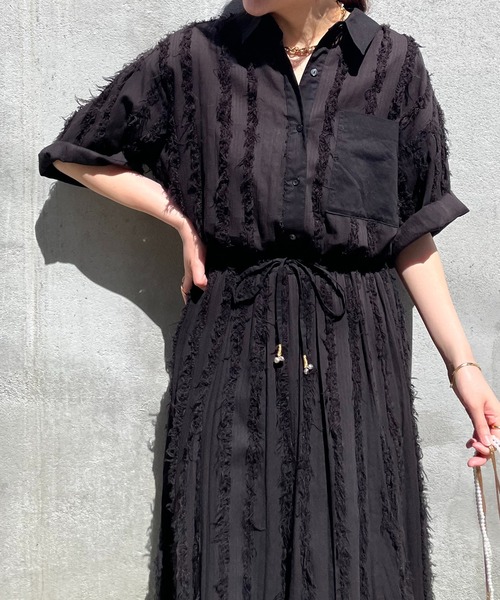 羽織るだけでコーデを華やかにしてくれるストライプジャガードシャツ【POINT】・ストライプ状のフリンジになったコットン素材を使用したハーフ袖シャツ。・袖丈は長め丈の肘が隠れるか隠れないかの丈感で、大人ぽく着て頂けるバランス。・丈は長めになっているので、お尻周りをカバーしてくるのが嬉しいポイント。・同素材のインドストライプジャガードスカート(CLZ1041401A0001)と合わせるときはアウトスタイルにしていただけると大人の女性にぴったりなセットアップ見えになります。【おすすめコーディネート】同素材のスカートとセットアップで着ていただくのはもちろん、デニムスタイルで大人カジュアルなコーディネートもおすすめです。【素材】本体:綿 98% ポリウレタン 2% 別布:綿 100%透け感:ややあり裏地:なし伸縮性:なし光沢感:なし洗濯:ご自宅にて手洗い可【インドシリーズ】着心地の良いインド綿やレース、刺繍をあしらった今季おススメのアイテム《ボトム》CLZ1041401A0001 インドストライプジャガードスカートCLZ1041402A0001 インドレース切り替えパンツ《トップス》CLZ1041404A0001 インドストライプジャガードシャツCLZ1041404A0002 インドレース切り替えブラウスCLZ1041404A0003 インドデニム刺繍ブラウス《ワンピース》CLZ1041409A0003 インドデニム風コンビネゾンCLZ1041409A0002 インドレースキャミワンピースCLZ1041409A0001 インドダマスクジャガードロンパース【気になる商品は「お気に入り」登録を】ハートマークをクリックし、お好きなカラーを選んでお気に入りに登録すると入荷情報や残り1点の通知、完売カラーの再入荷、セール情報などを受け取ることができます。※撮影場所やお使いのモニター環境により若干お色味が異なる場合がございます。特にロケの撮影では明るく見える傾向にございます。詳細撮影画像で色味をお確かめくださいます様お願いいたします。※サンプルで撮影をしております。若干の仕様が変更になる場合がございますので予めご了承の上ご注文くださいますようお願いいたします。※サンプルでの採寸のためあくまで目安となります。予めご了承ください。