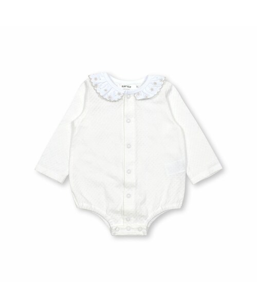 襟付きの長袖ボディミニ。 男の子にも女の子にも着てほしいから、カラーごとに異なる3つのデザインをご用意しました。 ホワイト:お花模様の刺しゅうがとってもキュート! 襟の縁にも刺しゅうをほどこしているので、華やかで存在感のあるデザインです。 オフホワイト:ぐるっと入った細めなグレーシルバーのラインがとってもクール。 襟先にオンしたゴールドのお星さまがさりげなくキラキラ輝きます。 ネイビー系:ぐるっと入った太いグレーシルバーのラインがオシャレ。 襟先には木馬の刺しゅうをオンしました。 襟付きで、キチンとした雰囲気のデザインなので、”おめかし”したい時にぴったり。 スナップボタンで全開になるので、首が座る前の赤ちゃんに着せやすく、新米ママにもおすすめ! 股下にもスナップが付いていて、足をバタバタしてもはだけにくく、オムツ替えもラクラクな設計になっています。 1枚での着用はもちろん、袖なしワンピースやサロペットのインナーとしても活躍するおすすめアイテムです。 ※柄の出方は生地の裁断により一点一点異なります。 2024年春夏男の子・女の子アイテム。 【SLAP SLIP(スラップ スリップ)】 ~子どもの欲しいをカタチに~ ヨーロッパのこどものように 子どもらしい今しか着れないナチュラルなかわいさを提案 どこか上品で清楚感漂うフレンチカジュアルは いつものコーディネートをさりげなく格上げ