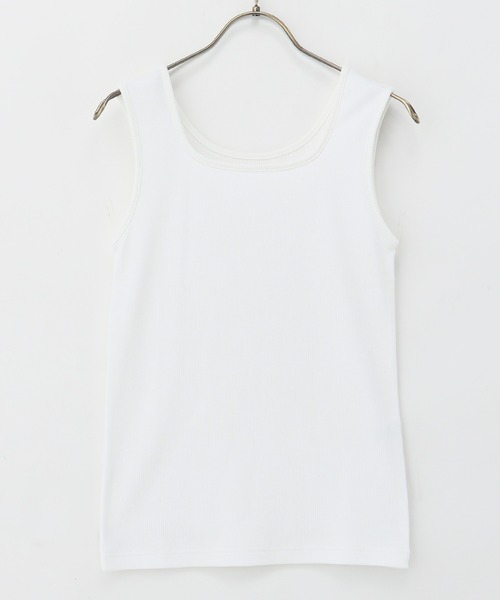 気分に合わせて使い分け 【デザイン】 1枚でスクエアとクルーネックの異なる表情を楽しめる、前後2wayデザイン。 広めの肩ひもで下着のラインが見えにくいのもうれしいポイント。 【素材・機能】 体にフィットしながら、伸縮性があり着心地抜群のテレコ素材。 紫外線対策ができる『UVカット』機能付き。 【スタイル】 カーディガンやシャツなどとのレイヤードスタイルに活躍。 品番:585-13-8798