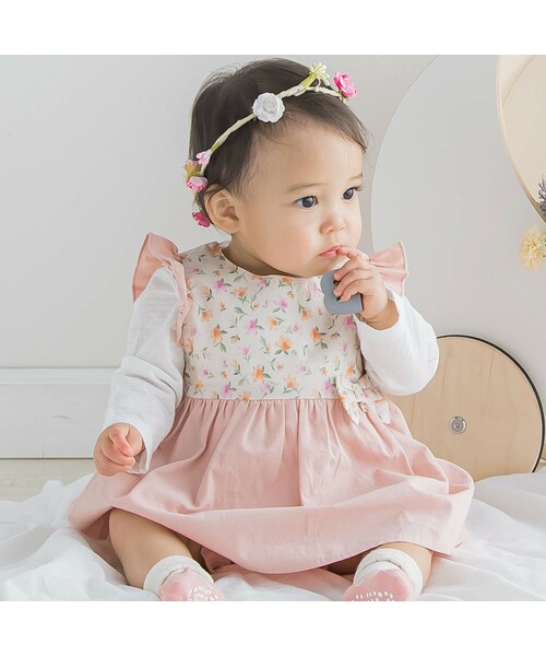 花柄と無地の生地を切り替えたワンピースとブルマのセットアップ。 切り替え部分にほどこしたリボンがアクセントに◎ フロント部分がキレイに見えるように後ろあきのデザインになっています。 シンプルなデザインのブルマはお手持ちのお洋服とも合わせやすい万能アイテム◎ スタリングの幅が広がる1着です。 同じ花柄を襟に使用したスタイ(1834-61003)とあわせた花柄コーデがオススメ。 春の訪れが待ち遠しくなるコーディネートの完成。 同じ柄を使用したおねえちゃんサイズのジャンパースカート(1803-61043)も展開しているのでお友達や姉妹とさりげないシミラーコーデもできちゃいます! オフホワイト系の花柄が女の子らしいピンクとブルー系の花柄がポイントのブルーの2色展開です。 ※柄の出方は生地の裁断により一点一点異なります。 2024年春夏女の子アイテム。 【SLAP SLIP(スラップ スリップ)】 ~子どもの欲しいをカタチに~ ヨーロッパのこどものように 子どもらしい今しか着れないナチュラルなかわいさを提案 どこか上品で清楚感漂うフレンチカジュアルは いつものコーディネートをさりげなく格上げ