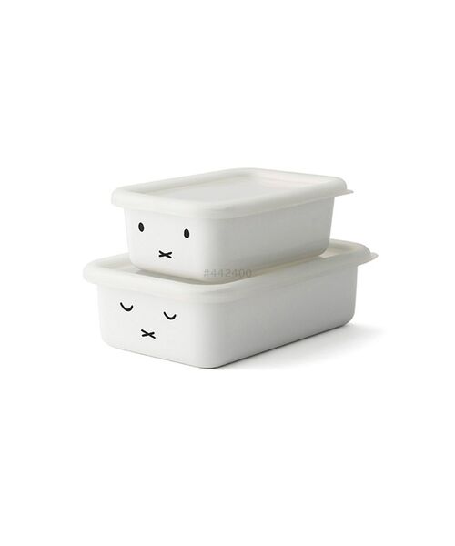 ミッフィーのお顔がかわいい、ホーロー製の角型ストックポット - ミッフィーのお顔だけのシンプルなデザインの純白のホーロー製浅型角容器の2個セット。裏表で異なるミッフィーの表情が楽しめます。ほうろうは酸や塩分に強いため食材の保存に適しています。表面のガラス質は汚れが付きにくく、匂いうつりも少ないので、キムチなどの発酵性食品のほか、さまざまな食材の保存が可能です。また、フタを外してオーブン調理にも使えます。 【商品詳細】 ・機能:電子レンジ使用不可、オーブン調理可(フタを外して) ・付属品:蓋 ・商品サイズに関する補足:Sサイズ:W145mm×H50mm×D95mm、重量:190g、容量:0.45L ・Mサイズ:W175mm×H55mm×D115mm 、重量:280g、容量:0.76L ------------------------------------------------------------------------------------- <価格改定のお知らせ> 2024/10/1(火)より原材料及び諸物価高騰により価格改定をさせて頂きます。 商品タグに記載している価格につきまして、旧価格のものが混在している場合がございます。 ご了承下さいますよう、お願い申し上げます。 -------------------------------------------------------------------------------------