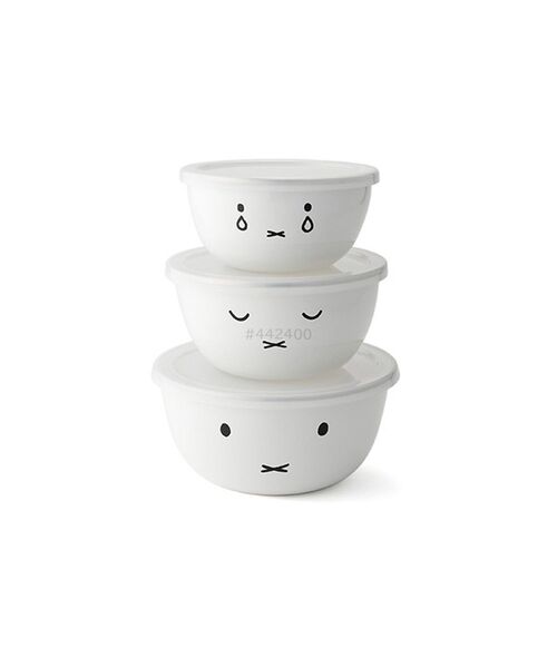 ミッフィーのお顔がかわいい、ホーロー製のミキシングボウル - ミッフィーのお顔だけのシンプルなデザインの純白のホーロー製のミキシングボール。入れ子式になっているので、収納も省スペースでOK。料理の時はボールとして活躍!料理が残ったらふたをしてそのまま保存容器としても使えます。各サイズで異なる表情のミッフィーが楽しめます。【商品詳細】・機能:フタ:食洗器使用不可・電子レンジ使用不可・オーブン調理可(フタを外して)・付属品:蓋・商品サイズに関する補足:・14cm:W150mm×H75mm×D150mm、重量:260g、容量:0.8L・・16cm:W170mm×H85mm×D170mm、重量:320g、容量:1.2L・・18cm:W190mm×H95mm×D190mm、重量:420g、容量:1.8L-------------------------------------------------------------------------------------<価格改定のお知らせ>2024/10/1(火)より原材料及び諸物価高騰により価格改定をさせて頂きます。商品タグに記載している価格につきまして、旧価格のものが混在している場合がございます。ご了承下さいますよう、お願い申し上げます。-------------------------------------------------------------------------------------