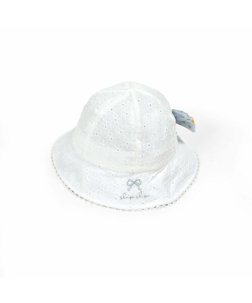 お花を並べたようなレース生地がキュートな女の子用ハット。 バックには花柄のリボンをあしらっていて後姿も可愛く見えるようにこだわったアイテム。 ツバの部分にラメ糸でほどこしたリボンのモチーフはさりげなくキラッと輝くおしゃれなアクセントです。 バックにはスリットを入れているので通気性もバッチリ◎ 花柄のリボンにはマジックテープがついているからお子様の頭の大きさに合わせて調整していただけます。 あごのゴム紐がついているので風が吹いても飛んでいかないから安心。 春夏の日差しからベビーの頭を守るハットはアウトドアやレジャーはもちろん、通園やおさんぽなどマルチに活躍するアイテムです。 春夏にピッタリな爽やかなオフホワイトと女の子らしい優しいピンクの2色展開です。 ※柄の出方は生地の裁断により一点一点異なります。
