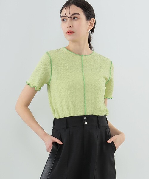 着映えが叶う1枚■デザインシャーリングのデザインと、センターに入ったラインがポイントのTシャツ。着回しの効くモノトーンカラーと、爽やかなGREENの3色展開でご用意しています。■コーディネート1枚ではもちろん、レイヤードスタイルもおすすめ◎。インでもアウトでも着用できます。■サイズコンパクトなシルエット。伸縮性があり着心地が良いです。■素材さらっとしていて肌触りの良い素材。■ケア方法手洗い可(詳細は商品についている品質表示ラベルをご覧ください)【OFFWHITE,BLACK】Model:H164 B72 W59 H85 Size:ONE SIZE【GREEN】Model:H166 B83 W63 H85 Size:ONE SIZE※光の当たり具合やパソコンなどの閲覧環境によって実際の色味と異なって見える場合がございます。予めご了承ください。※商品の色味は商品単体で撮影した画像をご参照ください。※アイテムサイズは商品サンプルを採寸しているため、実際の商品と多少の誤差が生じる場合がございます。※画像の商品はサンプルのため、実際の商品と「仕様」「色味」が異なる場合がございます。