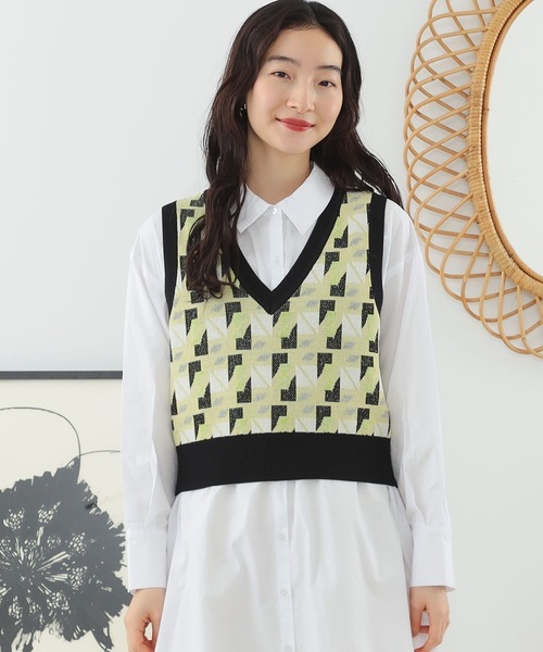 重宝できるおしゃれベスト■デザイン〈Ray BEAMS(レイビームス)〉のオリジナリティーが溢れる柄が印象的なニットベスト。2種類の糸を使用しており、凹凸のある表面感が特徴です。程良い開き具合のVネックやアームホールもポイントで、インナー合わせがしやすいようサイズやラインに拘った1枚。普段の着こなしにプラスワンするだけで、トレンド感溢れるスタイリングが完成します。■コーディネートそのままではもちろん、インナーにTシャツやブラウスを合わせたレイヤードスタイルもおすすめ。■サイズコンパクトサイズです。■素材軽くて風合いが良く、さらっとした手触りです。■ケア方法手洗い可 (詳細は商品についている品質表示ラベルをご覧ください)Model:H164 B72 W59 H85 Size:ONE SIZE生地の厚さ:普通透け感:なし伸縮性:あり光沢感:なし裏地:なし【スタッフレビュー】スタッフ:翔子身長:163cm / 普段サイズ:M / 着用サイズ:ONE SIZEサイズ感: 着丈は短め。身幅はインナー合わせができるくらいの大きすぎない程よいサイズ感です。素材感: 柔らかく着心地が良いです。ポイント: 個人的にはデニムパンツなどを合わせたシンプルコーデがおすすめ!※光の当たり具合やパソコンなどの閲覧環境によって実際の色味と異なって見える場合がございます。予めご了承ください。※商品の色味は商品単体で撮影した画像をご参照ください。