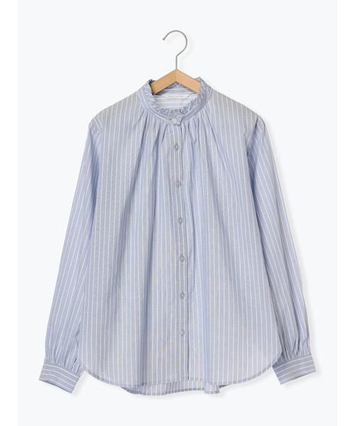フリルをあしらったハイネックのデザインが可愛らしいアクセントになるブラウス。 カラーによって柄が異なるので、ご自身の好みに合ったスタイルをお選びいただけます。 前後で裾の長さが異なり、動きのある印象を演出◎ デイリーユースやオフィスカジュアルにもお使いいただけるアイテムです。 【その他採寸】 F 着丈:[前]62cm[後]66cm