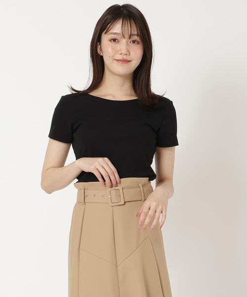 ヘルシーに着こなせるバックオープンカットソー。 カップ付きで一枚ですっきりと着られます。 大きく開いたバックスタイルが、カットソーなのに女性らしく着こなせるのがポイントです。 トレンドのショート丈で程よくヘルシーな肌見せができるアイテムは暖かくなるこれからの季節にぴったりです。 カップ付きなので、下着を気にする事無く着て頂けるのも嬉しいポイント。 【styling】 程よいジャストなサイズ感でアウトスタイルも、インしてすっきりした着こなしでもOK シンプルにデニムと合わせたり、サロペットやジャケットなどのインナーにもおすすめです。 シアー素材のシャツやトップスと合わせてインナーをチラ見せすると、トレンドライクな着こなしが楽しめます。 -------------------------- 透け感:なし 裏地:あり 伸縮性:ややあり 生地の厚さ:普通 --------------------------- F:着丈72cm バスト78cm 肩幅32cm 袖丈15cm 裾まわり70cm