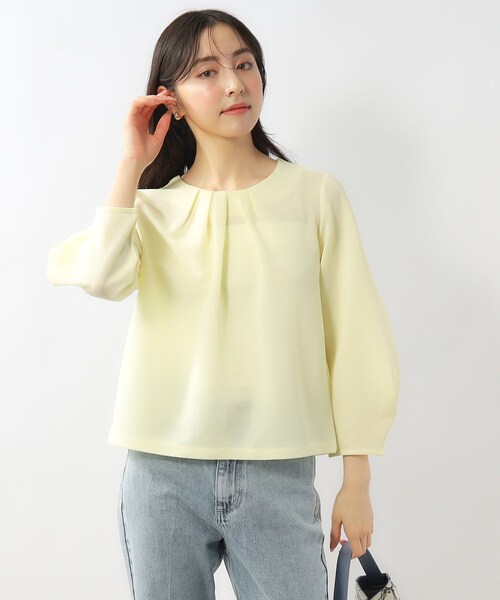 布帛ライクなきちんと感のあるデザインジャージトップス【素材】・繊細で程よいハリ感と光沢感のあるリップル素材を使用・ジャージならではの伸縮性とリラックス感のある着心地・程良い肉感で体のラインを拾わず、シーズンレスで着用いただけます。・マシンウォッシャブルなので、ご自宅で簡単にお手入れしていただけます。※こちらの商品はやや透け感があるため、インナーの着用をおすすめします。【デザイン】・フロントのアシメタックと立体的な袖のタックが印象的で、一枚で着映える構築的なデザインプルオーバー・フロントにアシメタックを入れることで視線を上にあげ、顔周りをそっと華やかにしてくれ、デザインスリーブが構築的でポイントになります。・コンパクトな身頃で、タックインでもアウトでもすっきり決まり、上品な着こなしが叶います。モデル情報:身長166cm 着用サイズ:38(M)店舗へのお問い合わせ商品番号:C58-18202●製品寸法:36(S):着丈54cm B96cm 袖丈49cm 肩幅35cm38(M):着丈55cm B99cm 袖丈50cm 肩幅36cm40(L):着丈56cm B102cm 袖丈51cm 肩幅37cm42(LL):着丈57cm B106cm 袖丈52cm 肩幅38cm備考: