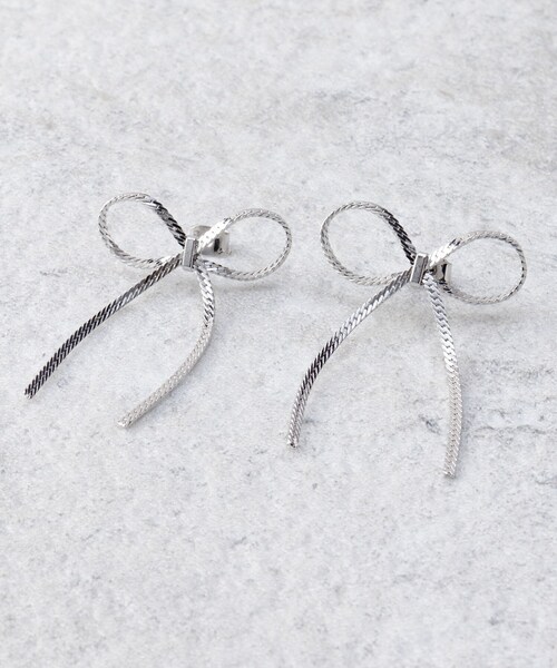 トレンドのリボンモチーフピアス 【デザイン】 スネークチェーンでリボンの形をデザインした大き目ピアス。 コーディネートにトレンド感をプラスしてくれるアイテムです。 店舗へのお問い合わせ商品番号:C71-38523 ●製品寸法: 00:モチーフH4cm モチーフW3cm 備考: