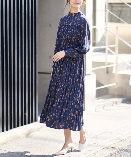 ◆デイリーから結婚式・顔合わせなどにも対応可能な万能ワンピース◆ 【デザイン】 ・胸元~プリーツが施された華やかなデザインのワンピース。 ・無地は腕のみシアー感を残し、身頃は透けない安心仕様。 ・ラメ糸が入った生地で、今年注目の光沢感のあるアイテム ・高すぎないハイネックデザインで女性らしさも◎ ・バックボタンデザインで後ろ姿までこだわりました。 ・取り外し可能な共布ベルト付。 ・普段着から結婚式、顔合わせ、七五三などデイリーからイベントまで幅広く使えます。 ・上品なサーモンピンク、ベーシックなネイビー、華やかな花柄の3色展開です。 【素材】 ・ご自宅の洗濯機で洗えます ・ラメが入った光沢感のある上品な生地感 【コーディネート】 一枚でさらっと着るのはもちろん、カーディガンやジャケットを羽織ったり、 今年はカジュアルなジップパーカー合わせもおすすめです。 きれい目な小物と合わせれば七五三や結婚式などのオケージョンシーンにも対応可能です。 -------------------- 透け感:腕、裾部分のみあり 裏地:あり 伸縮性:なし 光沢感:ややあり 生地の厚さ:ふつう -------------------- ≪お気に入り登録機能の使い方≫ ■商品のお気に入り登録(ハートマークをクリック) 再入荷通知や値下げ等、お得なご案内を受けることができます。 -------------------- ※商品画像は、光の当たり具合やパソコンなどの閲覧環境により 実際の色味と異なって見える場合がございます。 商品の色味の目安は商品単体の画像をご参照ください。 ※34(XSサイズ)・42(XLサイズ)はWEB・一部限定店舗での販売です。