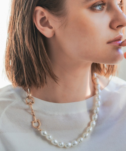 存在感のある変形パールが華やかな輝きを放つネックレス。さりげないビットパーツが上品なアクセントをプラスします。 セレモニーシーンやお呼ばれなど、特別な日の装いを彩ってくれます。 カジュアルなコーディネートにも相性が良く、幅広いシーンで活躍するアイテムです。 ご自身にはもちろん、大切な方へのプレゼントにもぴったりです。 ------------------------------------------- ●YECCA VECCA● (イェッカ ヴェッカ) 「大人のハッピーモードな着映え服」 毎日を自分らしく、ハッピーに過ごすことにポジティブな女性のためのリアルクローズ。キーワードは「遊び心のある、女性らしいモード服」でも「コンフォート」。 都会的で女性らしいムードを大切に着ていて心地よく、気持ちが上向きになるような遊び心のあるデザインウェアをラインナップ。 自分自身がわくわく出来る洋服で日常を最大限に楽しむ大人の為のスタイルを提案していきます。 ▼商品のお気に入り登録がおすすめです ▼ 商品ページ内のハートマークをクリック。完売時の再入荷や、最後の1点の通知、コーディネート画像がアップされたとき、お得なお値下げの際の通知を受ける事ができます。 【お知らせ】ページでも通知が確認できます。 -------------------------------------------