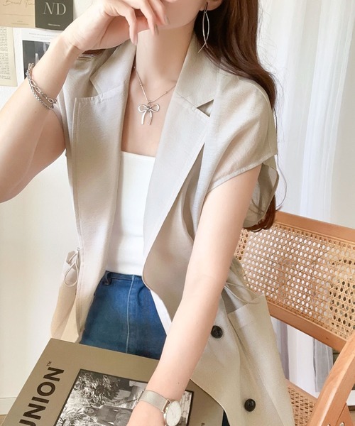 ZOZOTOWN人気アイテムランキング3位獲得!(レディース/ベスト) 2024年5月1日時点 軽やかなシアー素材が上品な印象に仕上げる。 エレガントさとモードさを兼ね備えた優秀item。 微光沢のオーガンジー素材で上品な雰囲気に仕上げたダブルボタンのジレベスト。 ウエストのドローコードがアクセントになりシルエットの変化も楽しめます。 他と差がつくデザインや生地感で ワードローブに1枚あると、スタイリングの幅が広がる優秀item。 ■point ・ダブルテーラード ・ドロスト仕様 ・シアー光沢素材 ・サイドスリット ■detail 程よい透け感が上級見え間違いなしのシアーダブルベスト。 絶妙な落ち感と上品で艶やかな素材が女性らしさを感じさせる一枚。 サイドスリットで軽やかさをプラスしました。 ウエストにはシルエットの変化が楽しめるドロストデザインを施し、 さりげなくスタイルアップも叶えます。 カジュアルにもコーディネートできるよう フロントには大きめなパッチポケット&マーブルボタンを施しました。 サラッと1枚羽織るだけでトレンドライクな 着こなしへと変化させてくれる抜群の優秀アイテム! ■fabric 適度な光沢感のあるシアーオーカンジーを使用しています。 …………………… 透け感:あり 厚さ:薄手 伸縮性:なし 裏地:なし ポケット:あり 洗濯方法:洗濯機可(ネット使用) …………………… ※詳しいお手入れ方法は商品タグをご参照ください。 ※ネットに入れてのお洗濯をおすすめいたします。 ■coordinate シャツ感覚で取り入れやすく様々なボトムスと好相性。 デニムやスラックスと合わせればハンサムな印象に、 ボリュームのあるスカートやタイトスカート合わせで女性らしくも着こなせる一枚。 透け感を生かし、ロゴTシャツはもちろんワンピースの羽織りや、 ヘルシーにキャミソールをレイヤードしたスタイルもおすすめ。 前を閉じて、きちんとトップス感覚で着るのも◎ いつものスタイルにプラスワンで、高見えコーデが完成します。 タートルネックニットからタンクトップまで、 合わせるインナーによって、ロングシーズン楽しめる一枚。 さっと羽織るだけでトレンド感UPが叶います。 日除け対策(紫外線対策)や冷房対策の羽織りに重宝すること間違いなしのアイテムです。 ご覧のモニター環境により、画像の色味と多少異なる場合がございます。 ★《お気に入り登録》でお得な情報がいっぱい★ ・「商品のお気に入り登録」で再入荷通知や、ラストの通知、セール通知も受け取ることができます。 ・「ブランドのお気に入り登録」で新商品や再入荷など、お得な情報を受け取ることができます!