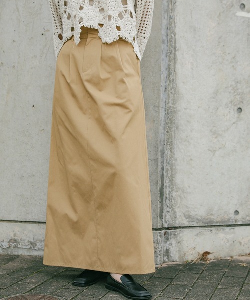 -point- & -styling- マルチに活躍するハイウエストタックAラインスカート きれいなAラインが魅力のアイテム。 広がりすぎないシルエットで大人っぽく着用頂けます。 大きめのタックとハリ感のある生地でボディラインをさり気なくカバー。 ハイウエストデザインなのでスタイルアップ効果も◎ ウエストにベルトループを付けて、カジュアルさをプラスしました。 スタイリングに取り入れやすいブラック、ベージュの2色展開でご用意しました。 春にはロンTやシャツ合わせたり、夏場にはアメスリやコンパクトTシャツを合わせがおすすめ。 スニーカー、ミュール、サンダルなど合わせるシューズを選ばないのもうれしいポイント。 コットンブレンドロングスカート ---------------------------- 素材 ポリエステル50%・綿50% ---------------------------- 伸縮性 なし 生地の厚さ ★★☆☆☆ 裏地 なし ---------------------------- ※167cmモデル着用画像はモデルの身長に合わせたサンプルです。 実際の商品採寸情報はサイズ表をご確認ください。 ---------------------------- ※モニター・環境等により実際の商品と多少色味が異なって表示される場合がございます。 予めご了承をお願いいたします。 ======================= ■袋梱包の為、染料による特有の匂いが抜けきれず、匂いがする場合がございますが不良品にはあたりません。 上記注意点での返品、交換はお断りします。ご了承の上お買い求めくださいませ。 ■本製品は生産過程におきまして色味、サイズ感等若干の誤差が出る場合がございます。予めご了承くださいませ。 ======================= 【お買いものをお楽しみいただく為に!】 ▼商品のお気に入り登録 完売カラーの再入荷通知や、ラスト1点の通知、セールの通知も受け取ることができます。 ▼ブランドのお気に入り登録 新商品や再入荷など、いち早くブランドのお得な情報を受け取ることができます!