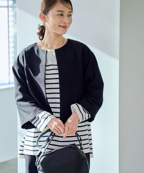 ~カジュアルな私のきれいめスタイル~ coen新レーベル【RONEL】が24SSよりデビュー! セレモニーもカジュアルも、シーン不問で活躍してくれる頼もしい1枚 ■デザイン 余裕シルエットが程よいヌケ感を演出してくれるショートジャケット。手首が覗く短かめのフレアスリーブがフェミニンな印象です。衿回りはどんなインナーでも合わせやすいクルーネックを採用。同素材のオールインワン(別売り 品番:76966420052)とのセットアップも可能です。 ■素材 反発性と膨らみがあり、しわになりにくいダブルクロス使用。ラインが非常にきれいで仕立て栄えのするファブリックです。 【RONEL by coen (ロネル バイ コーエン)】 様々な生活シーンで役割を持つ、「働く」すべての男女に。オフィスやセレモニー等、日常のきちんとしたシーンでも使える時代にフィットする汎用性のあるアイテム展開。忙しい毎日を彩るcoenのキレイめカジュアルラインです。 ※展開店舗限定レーベルです。 透け感:なし 生地の厚さ:やや厚い 光沢感:なし 裏地:あり サイドポケット:あり 家庭洗濯:不可 ※《色移りにご注意》濃色品の場合、摩擦により淡色(特に白)物に色移りする場合がありますので十分ご注意下さい。 【注意点】 ※撮影商品はサンプルの為、実際の仕様と異なる場合がございます。 ※画像の商品は光の照射や角度、お使いのモニター環境により、実物と色味が異なる場合がございます。スタジオ物撮りの画像が実物の色味に一番近くなっております。 ※予約商品の場合、お届け予定はあくまでも目安となります。 生産の都合上、お届け時期が前後したり実店舗入荷時期とずれる場合がございますので、あらかじめご了承ください。 品名:60 ダブルクロス ショートジャケット 品番:76966420051