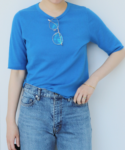 柔らかいタッチで上品な印象のニットTシャツ。 程よくゆとりがありながら、袖丈が少し長めのデザインですっきりとしたシルエットに仕上げています。 同素材のビスチェとレイヤードするスタイリングもおすすめです。 ボトムを選ばず様々なスタイリングに活躍するアイテム。 ********************** 透け感:なし 裏地:なし 伸縮性:あり 光沢感:なし 生地の厚さ:普通 ********************** ※シリーズのご案内 Plain knit ビスチェ(商品番号:24080922112020) ※取り扱いについては、商品についている品質表示でご確認ください。 ※ 店頭及び屋内外での撮影画像は、光の当たり具合で色味が違って見える場合があります。 商品の色味は、商品アップ画像をご参照ください。 また、お客様のお使いのPCのモニター環境などにより色味が違って見える場合があります。 予めご了承の上ご注文ください。 本体:手洗い可能