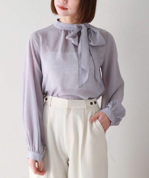 ■1枚で主役級■リボンタイでコーディネートを華やかに。リボンがセンターより少しずれているので、大人っぽく着ていただけます。ショルダーはジャストなサイズ感。パフスリーブではないので、可愛らしくなりすぎない点は嬉しいポイントです。透け素材で肌見せ。暖かい日は1枚で、肌寒い日はカーディガンとセットで着こなせるので、長いシーズンお楽しみいただけます。今年はデニム合わせでカジュアルミックスなスタイリングがおすすめ♪ーーーーーーーーーーーーーーー透け感:あり裏地:なし伸縮性:なし光沢感:なし生地厚さ:薄い洗濯方法:手洗い可※詳しいお手入れ方法は商品についているタグをご覧くださいーーーーーーーーーーーーーーー※ご利用のモニター環境により、実際の色味と多少異なる場合がございます。 information … 欲しいitemをお気に入り登録(♡マークをclick) ・お買いのがし対策…完売itemの再入荷やラスト1点の情報をお知らせ ・欲しいitemをお得にget…price downになったらいち早くお知らせ ・スムーズ検索…ZOZOのお気に入りアイテムページで簡単checkできるから、再検索不要♪
