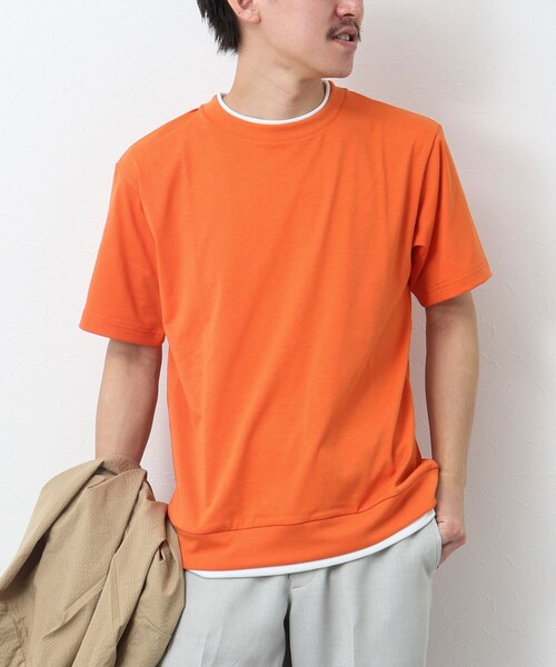 一枚でも決まるフェイクレイヤードデザイン 機能性も備えたユーティリティーなTシャツ ◆素材 ・高機能繊維《Quattro Seven/クワトロセブン※》使用 ・さらりとしたドライタッチな肌触り ・吸水速乾性が高く、汗ばむシーンでも快適に ※【Quattro Seven/クアトロセブン】 環境に考慮したリサイクルポリエステル100%の糸を使用し、形態安定・吸水速乾・抗ピル、UVカット、ポリエステルでありながらコットンの様な風合いを実現しました。 ◆デザイン ・襟と裾に別布を配したレイヤード風のデザイン ・クセのないスッキリとしたシルエット ・インナー使いでもかさばりにくい適度なリラックス感 ◆スタイリング ・キレイめなスタイリングに ・単品はもちろん、ジャケットやブルゾンのインナーにも ※洗濯機洗い可 ー・ー・ー・ー・ー・ー・ー・ー・ー・ー・ー 透け感:ややあり 裏地:なし 伸縮性:あり 光沢感:ややあり 生地の厚さ:普通 ー・ー・ー・ー・ー・ー・ー・ー・ー・ー・ー ★気になるアイテムは【お気に入り登録】がオススメです! 入荷情報やクーポン、セール情報が通知されるようになります。 【お取扱い上のご注意】 末永くご愛用頂くために、アテンションタグを必ずご確認の上、着用又はお取り扱い下さい。 ※店頭及び屋外での撮影画像は、光の当たり具合で色味が違って見える場合があります。商品の色味は、スタジオ撮影の画像をご参照下さい。 ※商品画像に関しては出来る限り忠実に表示出来るよう努めておりますが、お客様がご利用のモニターの設定及び特性により、実際の商品と比較し色味に若干の誤差が生じる場合があります。 ※画像の商品はサンプルとなりますので実際の商品と仕様、加工、サイズが若干異なる場合がございます。 ※製品洗い加工の商品は、多少の歪み、シワなどが見られたり、風合いやサイズ等が1枚1枚異なります。汗や雨等で濡れた時や、摩擦により色落ちし、他の衣料を汚すことがありますので(特に濃色のもの)ご注意ください。